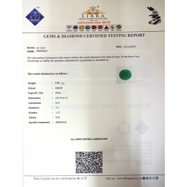 REPORT.NO.- LE 180CLARITY.- N/ACOLOUR.- GREENSHAPE/CUT.- OVALWT.- 5.44 CTSDIMENSION.- 3-2.10-1.6-1.R.INDEX.- 1.57HARDNESS.- 7.5COMMENT.- EMERALD..
