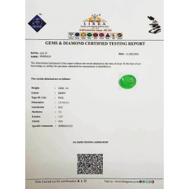 REPORT.NO.-LE 507CLARITY.-N/ACOLOUR.-GREENSHAPE/CUT.-OVALWT.-3.36 CTSDIMENSION.-2-3.8-6.4-5.R.INDEX.-1.57HARDNESS.-7.5COMMENT.-EMERALD..