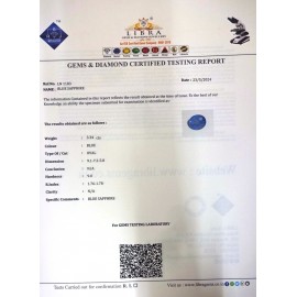 REPORT.NO.LN 595CLARITY.N/ACOLOUR.BLUESHAPE/CUT.OVALWT.8.52 CTSDIMENSION.3.6-1.5-5.1R.INDEX.1.76-1.78HARDNESS.9.0COMMENT.BLUE SAPPHIRE..