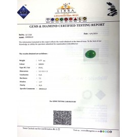 DATE:21-9-2024REF.NO:LE 1528NAME:EMERALD WEIGHT:6.19 CTSCOLOUR:GREENTYPE OF/CUT:OVALDIMENSION:3.2-10.1-7.3CONCLUSION:N/AHARDNESS:7.5R.INDEX:1.57CLARITY:N/ASPECIFIC COMMENTS:EMERALD..