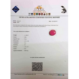 REPORT NO . LRA 38CLARITY . N/ACOLOUR . PINKSHAPE / CUT . OVALWT . 7.97 CTSDIMENSION . 2-9.10-9.6-5.R . INDEX . 1.76-1.78HARDNESS . 9.0COMMENT . RUBY { A }..