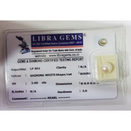 REPORT NO . LP 801CLARITY . N/ACOLOUR . SHINING WHITESHAPE / CUT . ROUNDWT . 3.90 CTSDIMENSION . 8-8.8-8.6-4.R . INDEX . N/AHARDNESS . 3.0COMMENT . PEARL..