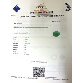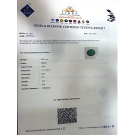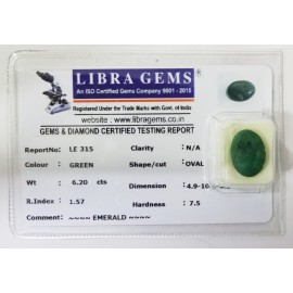 REPORT.NO.-LE 315CLARITY.-N/ACOLOUR.-GREENSHAPE/CUT.-OVALWT.-6.20 CTSDIMENSION.-4.9-10.7-5.2R.INDEX.-1.57HARDNESS.-7.5COMMENT.-EMERALD..