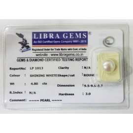 REPORT NO . LP 1013CLARITY . N/ACOLOUR . SHINING WHITESHAPE / CUT . ROUNDWT . 4.80 CTSDIMENSION . 9-5.9-5.6-7.R . INDEX . N/AHARDNESS . 3.0COMMENT . PEARL..