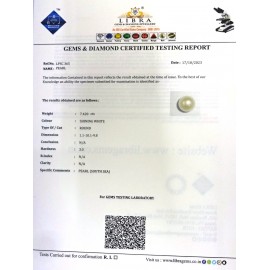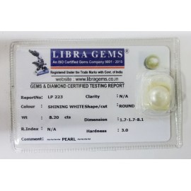 REPORT NO . LP 223CLARITY . N/ACOLOUR . SHINING WHITESHAPE / CUT . ROUNDWT . 8.20 CTSDIMENSION . 1-7.1-7.8-1.R . INDEX . N/AHARDNESS . 3.0COMMENT . PEARL..