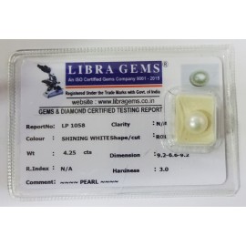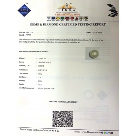 REPORT NO . LPSC 72CLARITY . N/ACOLOUR . SHINING WHITESHAPE / CUT . ROUNDWT . 4.27 CTSDIMENSION .  8-9.8-3.8-6.R . INDEX . N/AHARDNESS . 3.0COMMENT . PEARL { SOUTH SEA }..