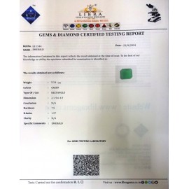 REPORT.NO.LEJ 266CLARITY.N/ACOLOUR.GREENSHAPE/CUT.OVALWT.4.28 CTSDIMENSION.1.5-9.1-5.5R.INDEX.1.57HARDNESS.7.5COMMENT.EMERALD {J}..