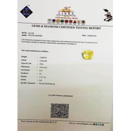 REPORT.NO.LYA 67CLARITY.N/ACOLOUR.YELLOWSHAPE/CUT.RECTANGLEWT.5.90 CTSDIMENSION.9.1-8.2-6.5R.INDEX.1.76-1.78HARDNESS.9.0COMMENT.YELLOW SAPPHIRE {A}..