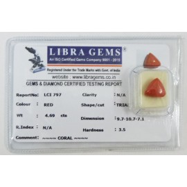REPORT.NO.-LCI 797CLARITY.-N/ACOLOUR.-REDSHAPE/CUT.-TRIANGLEWT.-4.69 CTSDIMENSION.-9-7.10-7.7-1.R.INDEX.-N/AHARDNESS.35COMMENT.-CORAL..