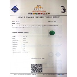 REPORT.NO.-LE 301CLARITY.-N/ACOLOUR.-GREENSHAPE/CUT.-OVALWT.-9.62 CTSDIMENSION.-6.1-2.4-6.2R.INDEX.-1.57HARDNESS.-7.5COMMENT.-EMERALD..