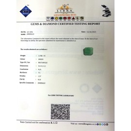 REPORT NO . LE 79CLARITY . N/ACOLOUR . GREENSHAPE / CUT . OVALWT . 3.39 CTSDIMENSION . 10-8.8-3.5-3.R . INDEX . 1.57HARDNESS . 7.5COMMENT . EMERALD..