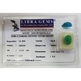 REPORT.NO.LE 405CLARITY.N/ACOLOUR.GREENSHAPE/CUT.OVALWT.3.13 CTSDIMENSION. 6-8.10-6.7-5.R.INDEX.1.57HARDNESS.7.5COMMENT.EMERALD..