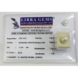 REPORT.NO.-LPS 312CLARITY.-N/ACOLOUR.-SHINING WHITESHAPE/CUT.-ROUNDWT.-3.56 CTSDIMENSION.-7-8.7-8.7-9.R.INDEX.-N/AHARDNESS.-3.0COMMENT.-C / WATER PEARL { SOSI }..