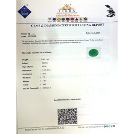 REPORT.NO.LE 806CLARITY.N/ACOLOUR.GREENSHAPE/CUT.OVALWT.3.63 CTSDIMENSION.10.5-8.2-5.7R.INDEX.1.57HARDNESS.7.5COMMENT.EMERALD ..