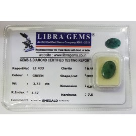 REPORT.NO.LE 433CLARITY.N/ACOLOUR.GREENSHAPE/CUT.OVALWT.3.73 CTSDIMENSION. 4-8.8-9.2-3.R.INDEX.1.57HARDNESS.7.5COMMENT.EMERALD..