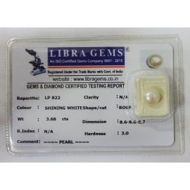 REPORT NO . LP 822CLARITY . N/ACOLOUR . SHINING WHITESHAPE / CUT . ROUNDWT . 3.68 CTSDIMENSION . 8-6.8-6.6-7.R . INDEX . N/AHARDNESS . 3.0COMMENT . PEARL..