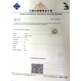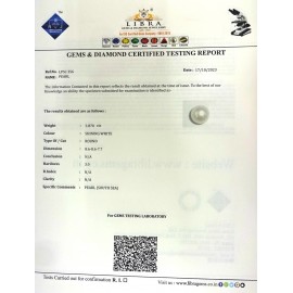 REPORT.NO.LP 1125CLARITY.N/ACOLOUR.SHINING WHITE SHAPE/CUT.ROUNDWT. 6.11 CTS DIMENSION.10.1-10.1-7.5R.INDEX.N/A HARDNESS.3.0COMMENT.PEARL..