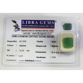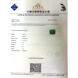 REPORT.NO.LE 376CLARITY.N/ACOLOUR.GREENSHAPE/CUT.SQUAREWT.5.72 CTSDIMENSION. 5-7.1-4.10-6.R.INDEX.1.57HARDNESS.7.5COMMENT.EMERALD..