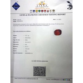 DATE:3-2-2025REF.NO:LHS 454NAME:HESSONITEWEIGHT:5.12 CTSCOLOUR:COCA COLATYPE OF/CUT:OVALDIMENSION:10-6.9-8.5-7.CONCLUSION:N/AHARDNESS:6.5-7.5R.INDEX:1.92-2.02CLARITY:N/ASPECIFIC COMMENTS:HESSONITE { S..