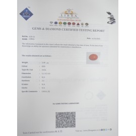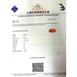 REPORT.NO.LCI 551CLARITY.N/ACOLOUR.REDSHAPE/CUT.CAPSULEWT.5.93 CTS DIMENSION.8.8-6.6-5.4R.INDEX.N/AHARDNESS.3.5COMMENT.CORAL ..
