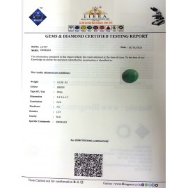REPORT.NO.-LE 301CLARITY.-N/ACOLOUR.-GREENSHAPE/CUT.-OVALWT.-9.62 CTSDIMENSION.-6.1-2.4-6.2R.INDEX.-1.57HARDNESS.-7.5COMMENT.-EMERALD..