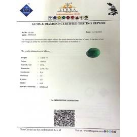 REPORT.NO.LE 814CLARITY.N/ACOLOUR.GREENSHAPE/CUT.OVALWT.5.28 CTSDIMENSION.4.2-10.8-4.5R.INDEX.1.57HARDNESS.7.5COMMENT.EMERALD ..