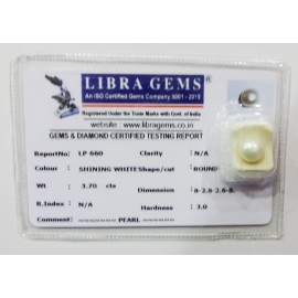REPORT NO . LP 660CLARITY . N/ACOLOUR . SHINING WHITESHAPE / CUT . ROUNDWT . 3.70 CTSDIMENSION . 8-2.8-2.6-8.R . INDEX . N/AHARDNESS . 3.0COMMENT . PEARL..