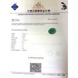 REPORT.NO.LE 422CLARITY.N/ACOLOUR.GREENSHAPE/CUT. OVALWT.3.68 CTSDIMENSION. 2-7.8-1.5-1.R.INDEX.1.57HARDNESS.7.5COMMENT.EMERALD..