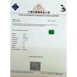 REPORT.NO.-LE 272CLARITY.-N/ACOLOUR.-GREENSHAPE/CUT.-OVALWT.-5.92 CTSDIMENSION.-3-1.10-4.6-8.R.INDEX.-1.57HARDNESS.-7.5COMMENT.-EMERALD..