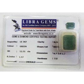 REPORT.NO.LE 367CLARITY.N/ACOLOUR.GREENSHAPE/CUT.RECTANGLEWT.12.31 CTSDIMENSION.6-7.2-9.5-7.R.INDEX.1.57HARDNESS.7.5COMMENT.EMERALD..