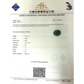 REPORT.NO.-LE 529CLARITY.-N/ACOLOUR.-GREENSHAPE/CUT.-OVALWT.-4.59 CTSDIMENSION.-2-7.9-9.6-1.R.INDEX.-1.57HARDNESS.-7.5COMMENT.-EMERALD..