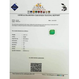REPORT.NO.-LE 749CLARITY.-N/ACOLOUR.-GREENSHAPE/CUT.-OVALWT.-7.39 CTSDIMENSION.-3-1.10-1.7-9.R.INDEX.-1.57HARDNESS.-7.5COMMENT.-EMERALD..