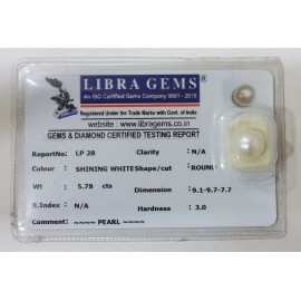 REPORT NO . LP 28CLARITY . N/ACOLOUR . SHINING WHITESHAPE / CUT . ROUNDWT . 5.78 CTSDIMENSION . 9-1.9-7.7-7.R . INDEX . N/AHARDNESS . 3.0COMMENT . PEARL..