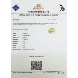REPORT NO . LPV 6CLARITY . N/ACOLOUR . SHINING WHITESHAPE / CUT . ROUNDWT . 4.23 CTSDIMENSION .7-9.8-4.8-4.R . INDEX . N/AHARDNESS . 3.0COMMENT . FRESH WATER PEARL { V }..