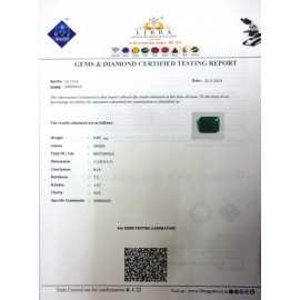 REPORT.NO.-LEJ 187CLARITY.-N/ACOLOUR.-GREENSHAPE/CUT.-RECTANGLEWT.-5.38 CTSDIMENSION.-2-1.10-8.5-4.R.INDEX.-1.57HARDNESS.-7.5COMMENT.-EMERALD { J }..