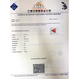 REPORT NO . LCI 42CLARITY. N/ACOLOUR. REDSHAPE/CUT. CAPSULEWT. 5.46 CTSDIMENSION. 6.9-6.3-5.6R. INDEX. N/AHARDNEESS. 3.5COMMENT. CORAL..