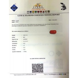 REPORT NO. LCI 25CLARITY. N/ACOLOUR. REDSHAPE/CUT. CAPSULEWT. 8.75 CTSDIMENSION. 10.9-6.5-6.3R. INDEX. N/AHARDNESS. 3.5COMMENT. CORAL..