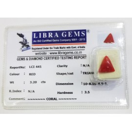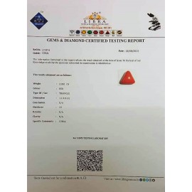 REPORT.NO.LCI 441CLARITY.N/ACOLOUR.REDSHAPE/CUT.TRIANGLEWT.3.20 CTSDIMENSION10.8-10.4-5.6.R.INDEX.N/AHARDNESS.3.5COMMENT.CORAL..