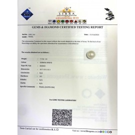 REPORT.NO.LPSC 150CLARITY.N/ACOLOUR.SHINING WHITESHAPE/CUT.ROUND WT.6.30 CTSDIMENSION.9.4-9.4-9.7R.INDEX.N/AHARDNESS.3.0COMMENT.PEARL {SOUTH SEA}..