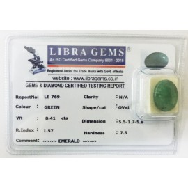 REPORT.NO.LE 769CLARITY.N/ACOLOUR.GREENSHAPE/CUT.OVALWT.8.41 CTSDIMENSION.5.5-1.7-5.8R.INDEX.1.57HARDNESS.7.5COMMENT.EMERALD ..