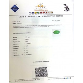 REPORT.NO.-LE 529CLARITY.-N/ACOLOUR.-GREENSHAPE/CUT.-OVALWT.-4.59 CTSDIMENSION.-2-7.9-9.6-1.R.INDEX.-1.57HARDNESS.-7.5COMMENT.-EMERALD..
