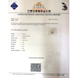 REPORT NO . LP 1115CLARITY . N/ACOLOUR . SHINING WHITESHAPE / CUT . ROUNDWT . 8.71 CTSDIMENSION . 1-5.9-2.1-5.R . INDEX . N/AHARDNESS . 3.0COMMENT . PEARL..