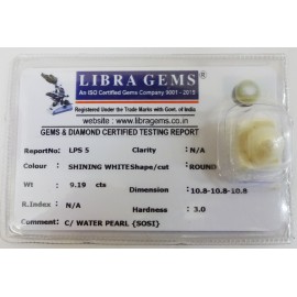 REPORT NO . LPS 5CLARITY . N/ACOLOUR . SHINING WHITESHAPE / CUT . ROUNDWT . 9.19 CTSDIMENSION . 10-8.10-8.10-8.R . INDEX . N/AHARDNESS . 3.0COMMENT . C / WATER PEARL { SOSI }..