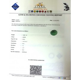REPORT.NO.-LE 748CLARITY.-N/ACOLOUR.-GREENSHAPE/CUT.-OVALWT.-4.33 CTSDIMENSION.-2-6.9-8.3-5.R.INDEX.-1.57HARDNESS.-7.5COMMENT.-EMERALD..