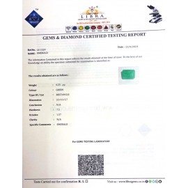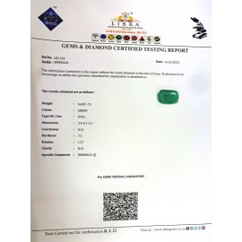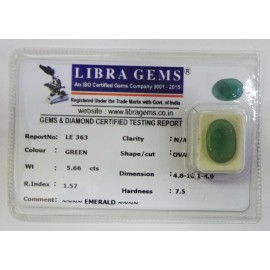 REPORT.NO.LE 363CLARITY.N/ACOLOUR.GREENSHAPE/CUT.OVALWT.5.66 CTSDIMENSION. 4-8.10-1.4-9.R.INDEX.1.57HARDNESS.7.5COMMENT.EMERALD..