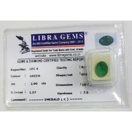 REPORT.NO.LEC 4CLARITY.N/ACOLOUR.GREENSHAPE/CUT.OVALWT.2.90 CTSDIMENSION.10.1-8.2-4.8R.INDEX.1.57HARDNESS.7.5COMMENT.EMERALD {C}..