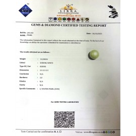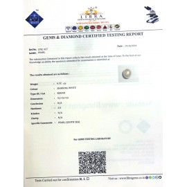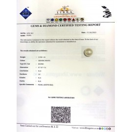 REPORT.NO.LP 1155CLARITY.N/A COLOUR.SHINING WHITE SHAPE/CUT.ROUND WT.6.69 CTS DIMENSION.10.4-10.4-8.2R.INDEX.N/AHARDNESS.3.0COMMENT.PEARL ..