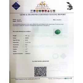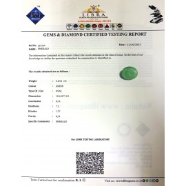 REPORT.NO.LE 564CLARITY.N/ACOLOUR.GREENSHAPE/CUT.OVALWT.3.23 CTSDIMENSION.2.1-8.7-4.4R.INDEX.1.57HARDNESS.7.5COMMENT.EMERALD ..