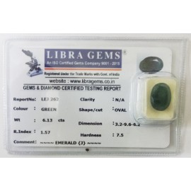 REPORT.NO.LEJ 262CLARITY.N/ACOLOUR.GREENSHAPE/CUT.OVALWT.6.13  CTSDIMENSION.3.2-9.6-6.2R.INDEX.1.57HARDNESS.7.5COMMENT.EMERALD {J}..