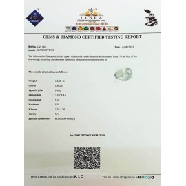 REPORT.NO.-LN 555CLARITY.-N/ACOLOUR.-BLUESHAPE/CUT.-OVALWT.-2.80 CTSDIMENSION.-10-5.9-2.2-9.R.INDEX.-1.76-1.78HARDNESS.-9.0COMMENT.-BLUE SAPPHIRE..
